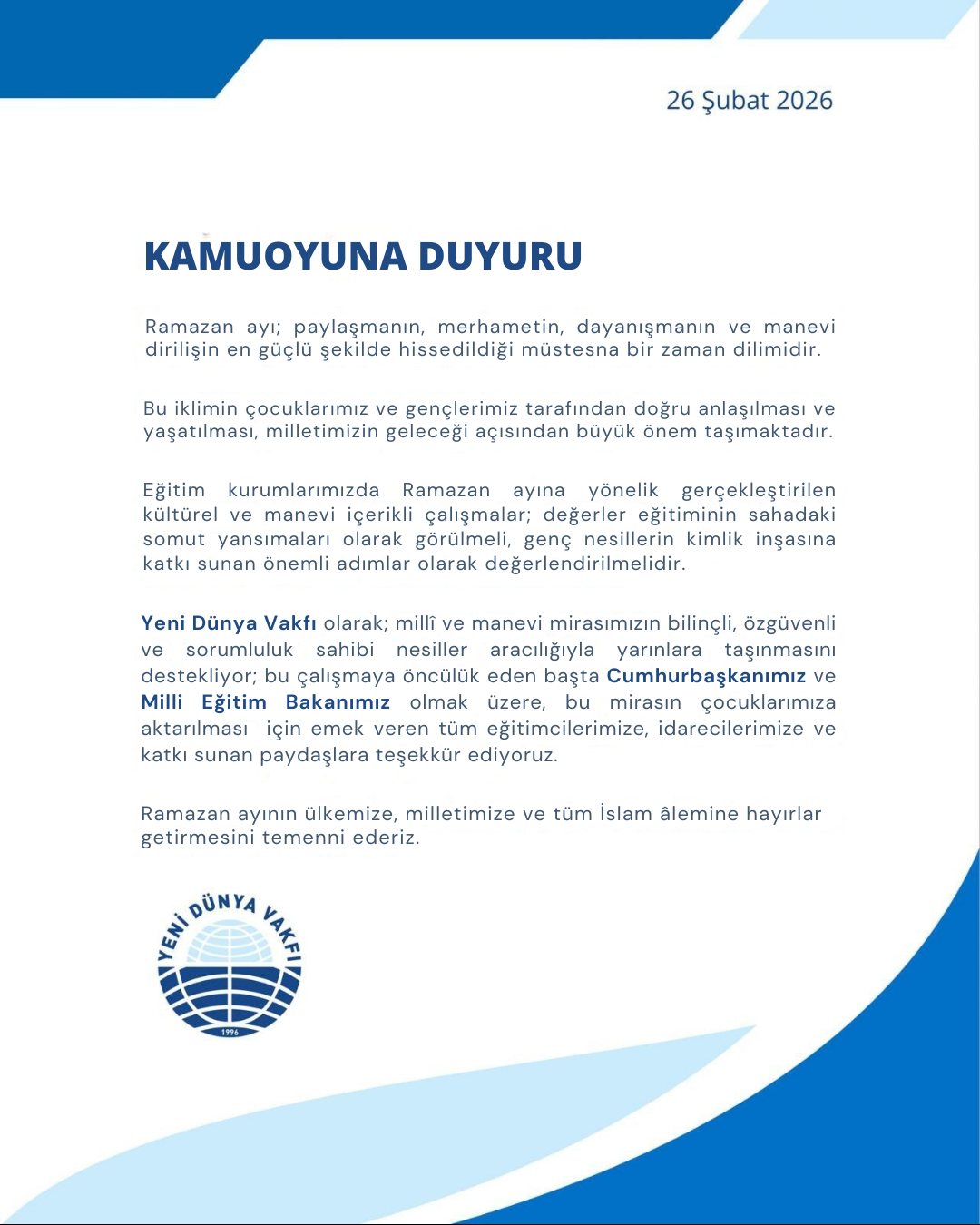 Yeni Dünya Vakfı’nın 30. yılı kapsamında düzenlenen İstişare ve Değerlendirme Kampı; iletişim kültürünü güçlendirmek, kurumsal hafızayı derinleştirmek ve geleceğe y&ou...