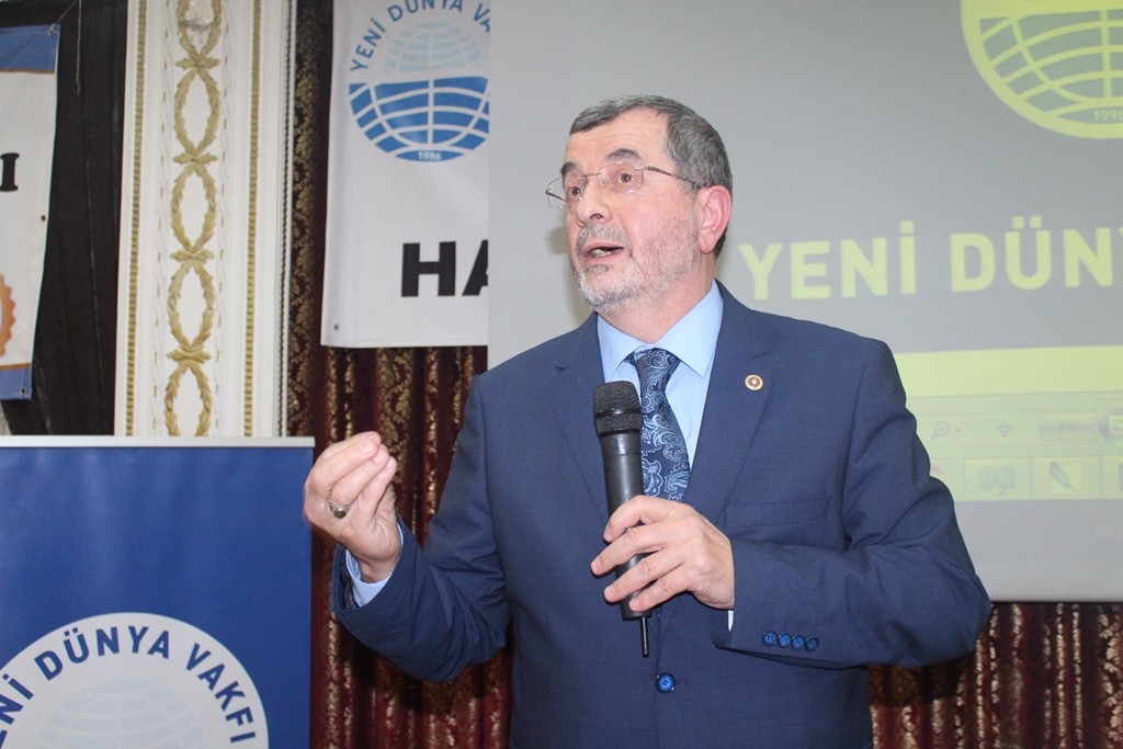 Kişilerin her türlü imkân ve vakitlerini harcayarak diri tutmaya çalıştığı vakıf kervanının önemine vurgu yapan Genel Başkan Göksu, Yeni dünya Vakfı’nın faaliyetlerini artırarak devam ettirdiğini, buna rağmen alanın çok geniş olduğunu; daha çok insana ulaşmak için herkesin bu kervana destek vermesi gerektiğini ifade etti. Vakıf çalışmalarında “ben de varım” diyen herkese kapının açık olduğunun altını çizen Başkan Göksu, “Bu akşam hamilerimizi öğrencilerimize rehberlik yapmaları için bir araya getirdik. Vakıf hizmetlerinde Hasbilik esastır. Hamilerimiz bu esas çerçevesinde siz öğrencilerimize rehberlik edecektir. Burada tanıştığınız abileriniz yarın sosyal hayatınızda sizin için önemli bir çevre olacaktır. Belki zor gününüzde akla gelen ilk isim, bir başka ifadeyle sosyal sermayeniz olacaktır. İşte bu proje ile okuldaki eğitiminize ek olarak gönüllük esasına göre farklı bir eğitim farklı bir çevre ve daha geniş vizyon kazanmaktasınız. Vakfın bu tür çalışmalarını önemseyiniz ve destekleyiniz” diye konuştu.<br />