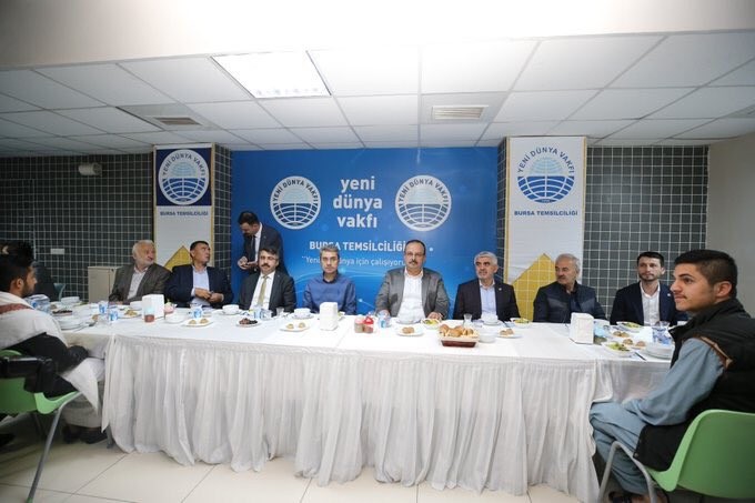 Yeni Dünya Vakfı Bursa Temsilciliği tarafından 16 Mayıs Perşembe Günü iftar programı düzenlendi. İftar programı Bursa Yükseköğretim Erkek Öğrenci Yurdu’nda, YDV Bursa Temsil Heyeti Başkanı Tahsin Kara’nın ev sahipliğinde YDV Yıldırım Yurdunda gerçekleşti. Programa YDV Genel Başkanı Mahmut Göksu, Bursa Valisi Yakup Canbolat, Yıldırım Kaymakamı Âdem Yazıcı, Yıldırım Belediye Başkanı Oktay Yılmaz ve birçok Bursalı bürokrat ve işadamı katılım gösterdi.