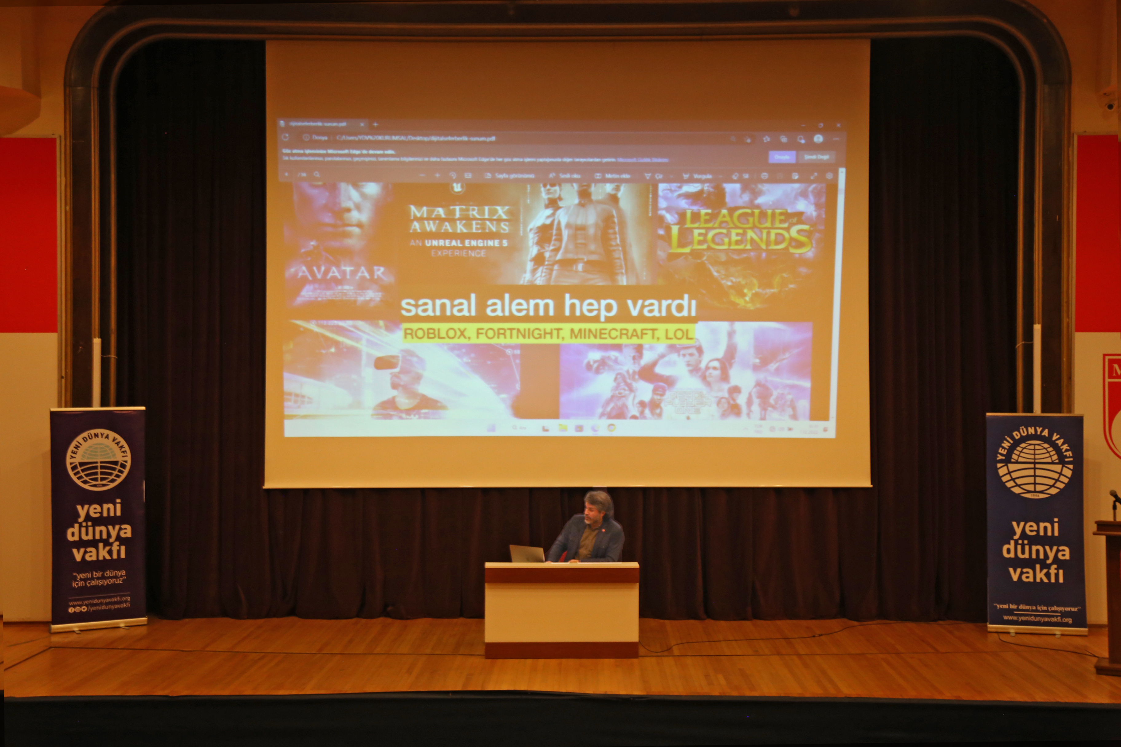 Yeni Dünya Vakfı, 'Ne Nedir?' başlığı altında düzenlediği konferans serisinde 'Metaverse Çağında Dijital Seferberlik' konusu ile Yönetmen Yazar Okan Özbay'ı konuk etti.